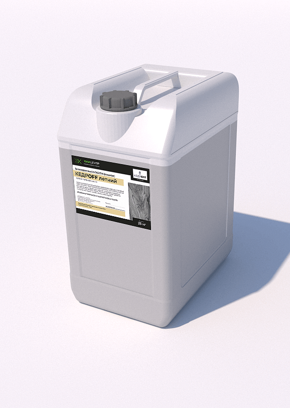 Концентрат активных веществ на водной основе. Разбавляется водой в соотношении на 1 литр состава 3 литра воды. Состав обеспечивает комплексную защиту древесины от биопоражений, затрудняет возгорание древесины. Обладает длительным антисептическим действием. Тонирует древесину в светло-янтарный цвет. Состав атмосферостойкий, но требует защиты пропитанной поверхности от длительного контакта с водой (навес, сайдинг или влагозащитное покрытие).